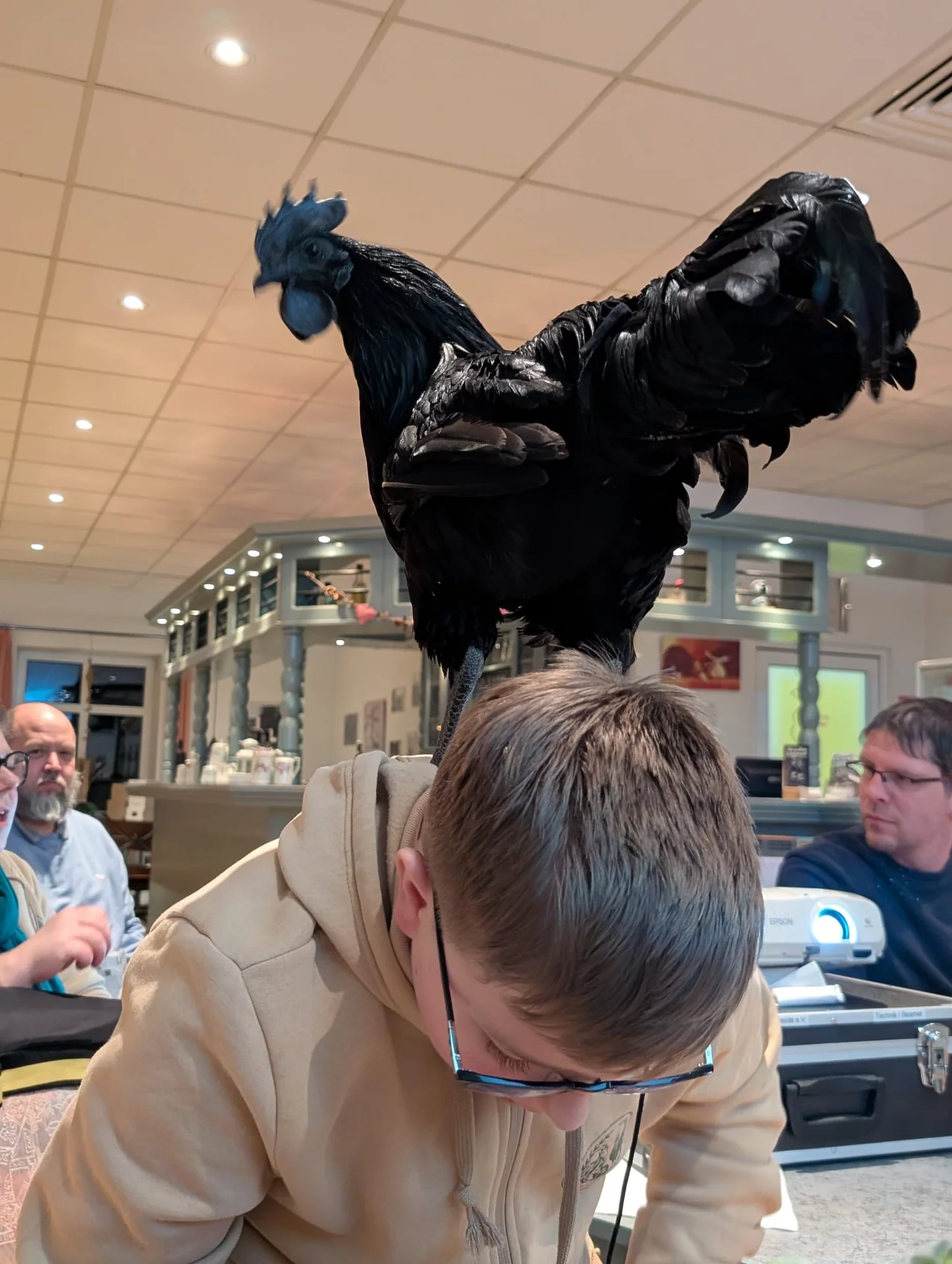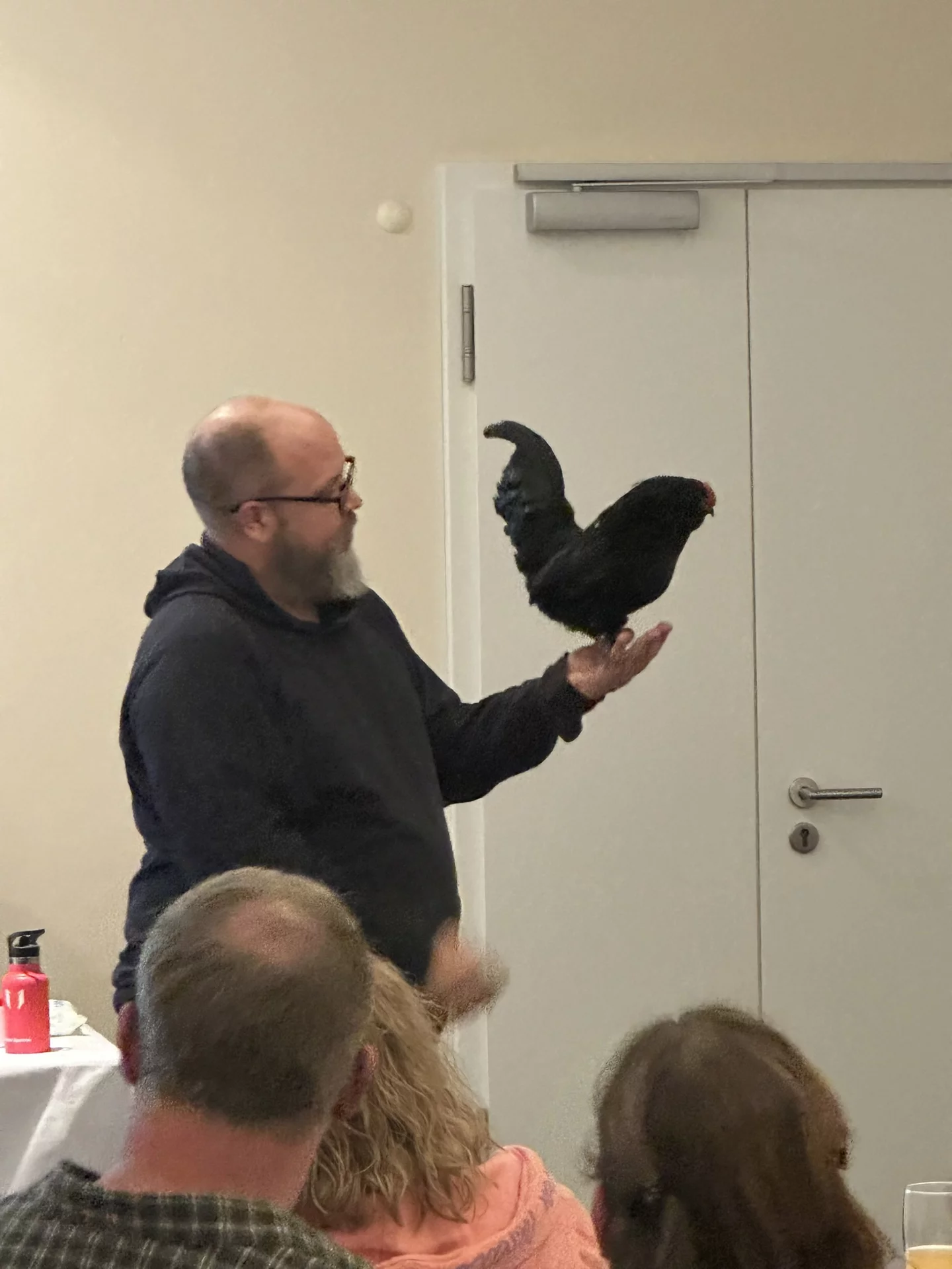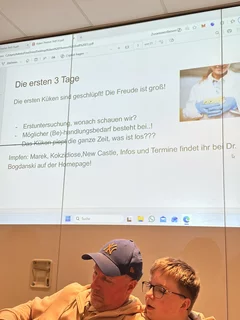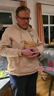 Beim heutigen Themen-Treff drehte sich alles um das Thema „Brüten“. Sarah führte mit viel Engagement und Begeisterung durch den Abend und schaffte eine angenehme, offene Atmosphäre, in der ein lebendiger Austausch entstehen konnte. Besonders schön war, wie die erfahrenen Züchter ihr Wissen und ihre Erfahrungen mit den interessierten Anfängern teilten – ganz unkompliziert und auf Augenhöhe. Auch praktisch gab es einiges zu entdecken: Verschiedenes Equipment konnte angeschaut und ausprobiert werden. Ein besonderes Highlight war, dass Nina nicht nur ihren Hahn „Karax“ mitgebracht hatte, sondern uns auch ein paar nur wenige Tage alte Küken zeigte, die für viele begeisterte Gesichter sorgten.