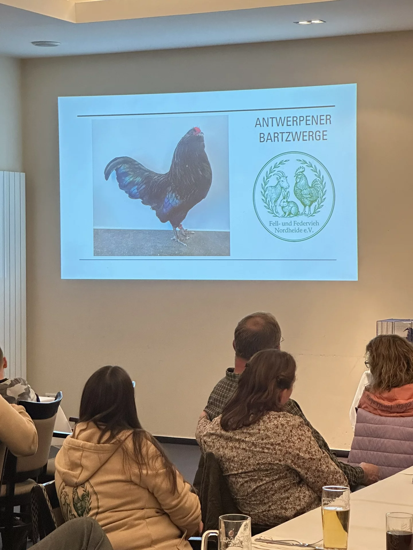 Die Antwerpener Bartzwerge standen heute im Mittelpunkt unseres Gruppenabends. Nachdem der offizielle Teil mit Themen wie dem Sommerfest, dem Tag des offenen Stalls, der Ausgabe der Bundesringe sowie einigen internen Punkten abgeschlossen war, übernahmen Jan und Sarah den zweiten Teil des Abends. Mit viel Engagement präsentierten sie die Bartzwerge, und Jan wusste dabei zahlreiche interessante und spannende Details über diese besondere Rasse zu erzählen. Auch waren wieder 2 Gäste zu Besuch, die gern unserem Verein beitreten möchten.